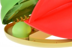 - A katapult oldalán található egy fehér cipzár – húzza el, hogy kinyissa a béka száját és behelyezhesse a labdát.