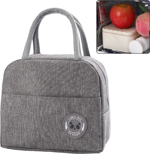 Stílusos és praktikus hőszigetelő táska, amelyet az ebéd kényelmes szállítására terveztek. Egyszerű és univerzális szürke dizájnja ideális munkahelyre, iskolába vagy kirándulásokra.