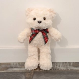 A díszes masni klasszikus skót kockás mintával elegáns hangsúlyt jelent, amely ünnepi és ajándékszerű jelleggel ruházza fel a mackót. A mackó stabil, álló testhelyzettel rendelkezik, és kiválóan alkalmas játszótársnak, alvótársnak vagy dekoratív elemnek a gyerekszobában.
