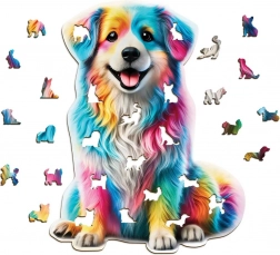 WOODEN CITY fa puzzle 250 darabos szivárványkutya formájában egyedülálló élményt nyújt az összeállításban. Az állati formákra lézerrel vágott darabok és az ökológiai csomagolás miatt vonzó lesz az eredetisége.