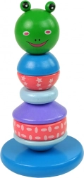 Ez a színes gyermek piramis 6 lekerekített gyűrűt tartalmaz, különböző méretekben és mintákkal, egy aranyos békafejjel a tetején. A félgömb alakú alap miatt minden érintéskor billeg, ami megnehezíti a gyűrűk elhelyezését a pálcán, így fejlesztve a gyerekek képzelőerejét és kéz-szem koordinációját.