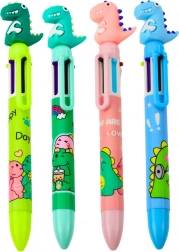 Ez a többszínű toll ideális a gyerekeknek, akik szeretik a dinoszaurusz mintákat. A toll 6 színű betétet tartalmaz: kék, piros, zöld, narancssárga, fekete és lila. Minden színt könnyen elérhetünk egy egyszerű gombnyomással, ami megkönnyíti a gyors színváltást másik toll nélkül.
