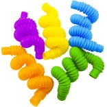 Ezek a csövek nemcsak összekapcsolhatók, hanem kiterjeszthetők is, és összerakáskor, szétszereléskor kellemes hangot adnak. Ezért tökéletes játékok a feszültség oldására és a játszó kreativitás fejlődésére.