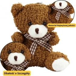 A 8 cm magas barna plüss medve kulcstartó ideális kiegészítő a kulcsokhoz, hátizsákhoz vagy táskához. Kompakt és könnyű, dekoratív elemként is megállja a helyét és erős csatja biztosítja a biztonságot az elvesztés ellen.