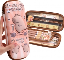 Ez a tágas tolltartó tartós és könnyen tisztítható anyagból készült. Rendélkezik egy fő rekesszel, amely hálós elválasztókat tartalmaz, amelyek tollakat, ceruzákat, színes ceruzákat, kiemelőket és más iskolai apróságokat tudnak tartani. A cipzár lehetővé teszi a gyors hozzáférést a tartalomhoz, és megvédi a veszteségtől.
