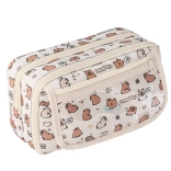 Nagy és funkcionális tolltartó kapibarás mintával ideális azoknak a tanulóknak, akik becsülik a praktikumot és a cuki dizájnt. Krém színű, kedves kapibarákat ábrázoló mintázattal, amely kiemelkedik a többi iskolai kellék közül. Alkalmas iskolába, egyetemre, művészeti órákra vagy otthoni irodába.