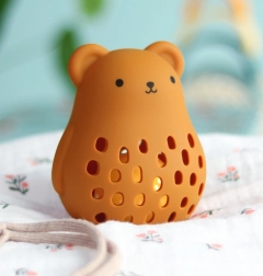 A medve csörgő nemcsak szórakozást, hanem biztonságot is nyújt. LFGB élelmiszeripari szilikonból készült, amely magas minőséget és biztonságot biztosít gyermeke számára.