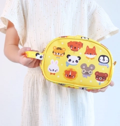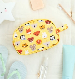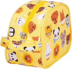 Sárga toalett táska állatokkal mintázva, ideális mindennapos használatra vagy utazáshoz. Elegendő helyet kínál az összes alapvető higiéniai eszköz számára, és könnyen hordható.