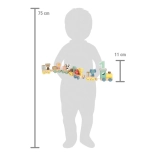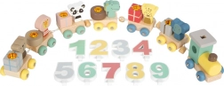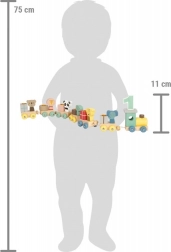 A gyerekek 6 állatot helyezhetnek el 6 kocsin, gyakorolhatják a színeket és a számokat, valamint fejleszthetik a fantáziájukat – az állatok kivehetők, és a vonaton kívüli játékokban is használhatók. A játék 2 éves kortól ajánlott, és fejleszti a finommotorikát, a koordinációs készségeket és a kreatív történetmesélést.