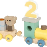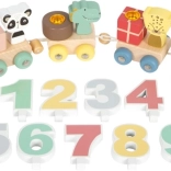 A mozdony az 1-től 9-ig terjedő számjegyeket hordozza lágy pasztellszínekben. A gyerekek szórakozva és természetesen gyakorolhatják a számsort és a színeket.