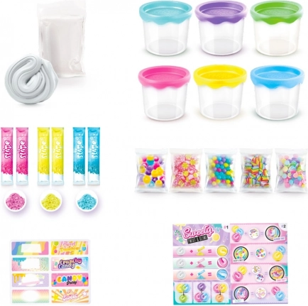 Fedezze fel a kreativitás világát az egyedülálló So Slime Marble Sweety Twist & Slime készlettel. Hozzon létre különleges színes slime-okat különböző színű porok és vidám díszítők segítségével.