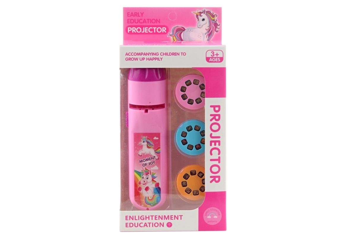 Gyerek projektor egyszarvúval nagyszerű szórakozás a legkisebbek számára! Ez a műanyag, elemmel működő projektor 24 egyszarvú képet vetít a falra, így a gyerekeket egy varázslatos világba repíti.