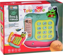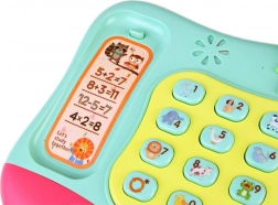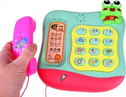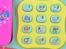 Nézze meg ezt a színes zenei telefont gyerekeknek, amely sok szórakoztató és oktató funkciót kínál. Minden gomb különböző dallamokat és hangokat játszik le, és állatok képei és angol számok találhatók rajtuk. Ha felemeli a telefonkagylót, hangos csengőhang kíséri üdvözlő dallammal, míg visszatételkor jellegzetes hang hallható.