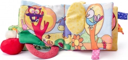 A szövet könyv továbbá olyan elemeket is tartalmaz, melyek lapozhatók, beilleszthetők és megrághatók, amik serkentik a gyerek érzékeit és ösztönzik a körülöttük lévő világ felfedezésére. Úgy tervezték, hogy biztonságos és ellenálló legyen a mindennapi játékhoz.