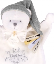 A Doudou márkájú plüss mackó prémium minőségű anyagokból készült, gyengéd kinézetét pedig a pocakján található finom szürke hímzés hangsúlyozza. Kellemes anyagai és divatos színei biztonságot és kényelmet nyújtanak a kisgyermekek számára. Puha anyagaival serkenti a babák érzékeit, így ideális ajándék, amely minden szülő örömét leli benne.