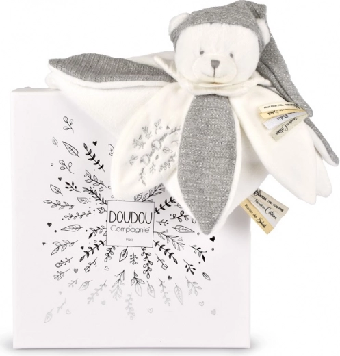 Ez a plüss mackó finom hímzéssel van díszítve, amely eleganciát és érzékiséget ad a játéknak. A testén található nagy szirmok segítenek fejleszteni a gyermek finom motorikai képességeit. A szalagok francia nyelvű üzenetekkel gyengédebbé teszik minden ölelést.