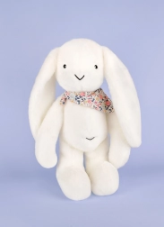 Ez a nyuszi kiváló társ gyermekek számára a puha és extra bársonyos anyagával, valamint finom színeivel. Támogatja az érzékelés és a finommotorikus készségek fejlesztését, ezáltal különösen hasznos a nyugodt elalvásban. Bármilyen alkalomra ideális ajándék, a nyuszika hozzájárul a gyermekek nyugalmához és szórakozásához.