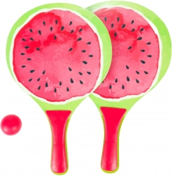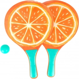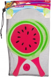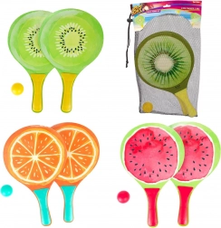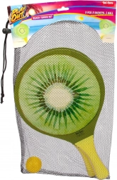 Élvezd a nyarat teljes gőzzel a stílusos, gyümölcs mintás strandtenisz-készlettel. Tartalmaz 2 könnyű ütőt és 1 labdát egy praktikus hálós hordtáskában. A színes kiwi-, görögdinnye- és narancsminták játékra csábítanak a strandon, a kertben vagy a parkban. Remek családi szórakozásra, a koordináció és a szabadtéri mozgás fejlesztésére.