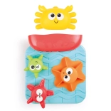 A hullámmintás alap és az erős tapadókorongok stabilan tartanak a kád vagy a csempe sima felületén, így a gyerekek biztonságosan játszhatnak elcsúszás nélkül.