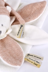 Szatén szalagok francia nyelvű szeretetteljes üzenetekkel, melyek a sapka és a kendő díszítései, még gyöngédebb érzést kölcsönöznek minden ölelésnek. A játék luxus ajándékdobozban érkezik, amely belül LED-ekkel van megvilágítva.