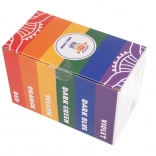 A csomagban hat feltűnő árnyalatot talál: fehér, narancs, sárga, zöld, kék és lila. A készlet remek választás a Holi fesztiválra, tematikus bulikra, csapatépítőkre és promóciós eseményekre. A por mosható, és a legtöbb textíliáról könnyen eltávolítható.