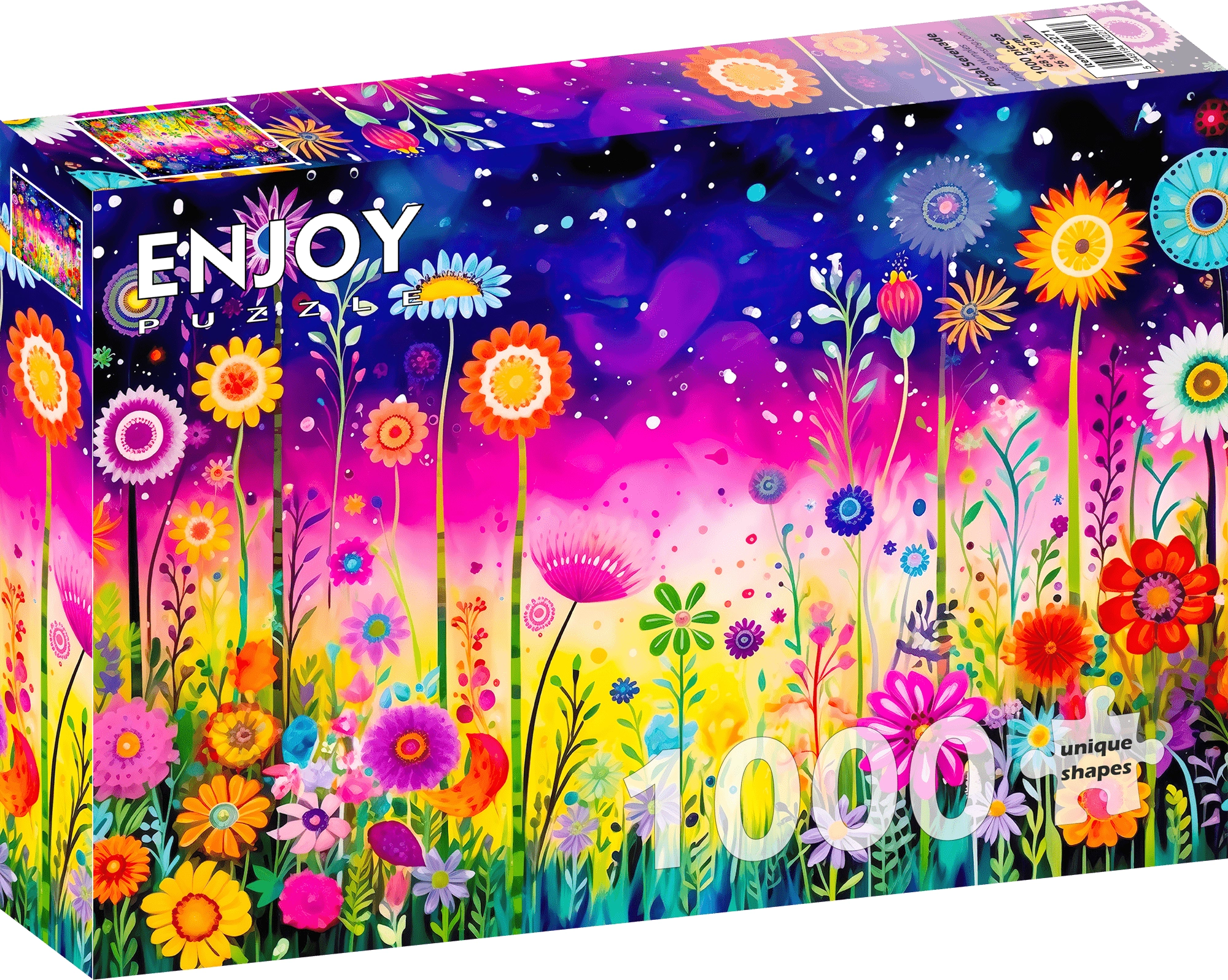 Élvezze az egyedülálló kirakós élményt a Szirmok szerenádjával, amely 1000 darabot tartalmaz, és lenyűgöző virágos táj dizájnjával ragadja meg a figyelmet.