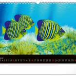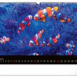 A Víz alatti világ 2026 fali naptárunk ideális a természet és az óceánok rajongói számára. A luxus papírral és élénk képekkel nemcsak praktikus segítő az idő követésére, hanem lenyűgöző díszítőelem is. Minden naptárlap megörökíti a víz alatti világ egyedi szépségét, a színpompás koralloktól a fenséges tengeri állatokig.