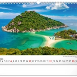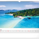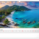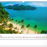 A Tenger 2026 fali naptár ideális mindenki számára, aki szereti a strandokat és egzotikus desztinációkat. Kristálytiszta türkiz vizű tengereket, pálmafákat és napfényes sugarakat mutat be, melyek valódi földi paradicsomot ábrázolnak. Minden hónapban egy másik strandpillanat varázsolja el Önt Portugáliából, Thaiföldről és a világ más részeiről.