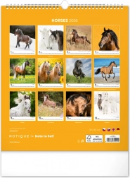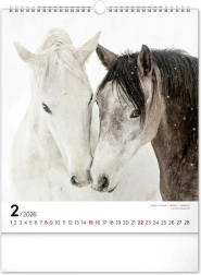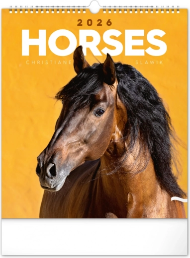 Falra szerelhető naptár Ló 2026 lenyűgöző képekkel mutatja be a lovakat teljes szépségükben. Ez a naptár hónapról hónapra egyedi fotókat kínál a lókedvelőknek a neves fotós, Christiane Slawik munkái által, így ideális kiegészítője minden otthonnak vagy irodának.<2/2>
