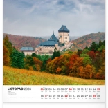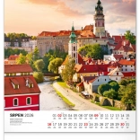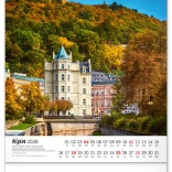 Fali naptár a 2026-os évre, amely bemutatja Csehország festői helyeit, a Karlovy Vary-tól Znojmo-ig. Ideális mindenki számára, aki szereti a cseh tájat.