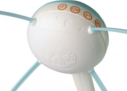 A körhintát az ágyhoz és a babakocsihoz is rögzíteni lehet. A fény vetítése vonzza a gyermek figyelmét. A körhinta hangerő szabályozást kínál, és állítható tartójával illeszkedik a legtöbb kiságyhoz.<3>