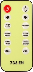 A vezérlés távirányítóval történik, amely szabályozza a világítást, a hangerőt és a hangokat. A funkciók közé tartozik:<4>