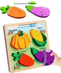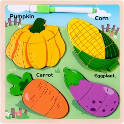Fa oktató kirakós játék zöldségekkel és rajztáblával