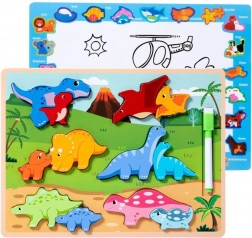 Ez a fa oktatási puzzle 12 színes dinoszauruszt tartalmaz, amelyeket a gyerekek a megfelelő helyekre helyeznek, ez elősegíti a logikus gondolkodás és a koncentráció fejlődését. Ezenkívül fejleszti a kézügyességet és a fantáziát.