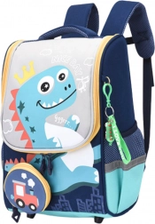 Az iskolai hátizsák rendelkezik egy tágas fő rekesszel, alkalmas könyvek, füzetek és iskolai felszerelések tárolására. Az elején található egy levehető táska lokomotív motívummal, amely önálló tolltartóként vagy díszként is funkcionálhat. A dísz dinoszauruszos medál bájt és karaktert ad a hátizsáknak.
