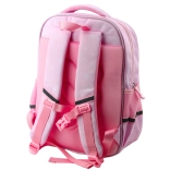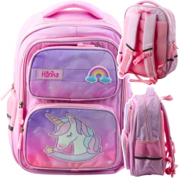 Az iskolai hátizsák két tágas rekesszel rendelkezik, amelyből az egyik elválasztóval ellátott, amely könnyíti a könyvek és füzetek rendszerezését. Az elülső részen két cipzáros zseb van, amelybe tolltartó, uzsonna vagy más apróságok férhetnek. Az oldalán rugalmas zsebek találhatóak palack vagy kulacs számára.