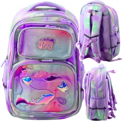 Ez a pasztell színű iskolai hátizsák ötvözi a stílust és a funkcionalitást. A delfin és szív alakú cserélhető rátétek teszik ezt a hátizsákot megkülönböztethetetlen kiegészítővé a gyerekek számára, akik gyakorlati hasznát és örömteli megjelenését egyaránt értékelik.