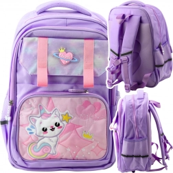 Lila iskolatáska macskával és mellkaspánttal 20L