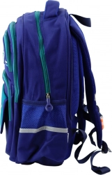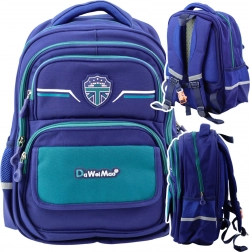 Sötétkék és zöld színű iskolai hátizsák a diákok kényelméért és szervezettségéért lett tervezve. Tartós anyagból készült mindennapi használatra.