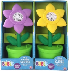 Élvezze a szórakozást a lila virágformájú buborékgéppel, amely nagy mennyiségű buborékot hoz létre egyszerre, és ideális születésnapi bulikra vagy kerti mulatságokra.