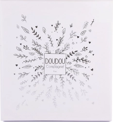A Doudou plüss medve úgy lett tervezve, hogy már születéstől kezdve biztonságérzetet és kényelmet nyújtson a gyerekeknek. Bézs sapkával és francia üzenetekkel ellátott selyem szalagokkal rendelkezik, melyek minden ölelésnek gyengédebb érintést adnak. Teste puha anyagból készült, ami kellemes tapintású, és Doudou márkájú finom hímzéssel van díszítve. Az érzékszervi és finommotoros fejlődést a következők támogatják: