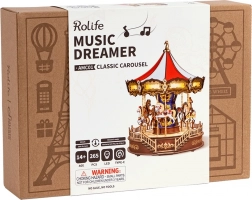 Hozzon létre egy darab nosztalgiát ezzel a 3D fa körhinta kirakóval. Állítsa össze saját zenedobozát LED világítással és 4 klasszikus dallammal ragasztó használata nélkül. A körhinta egyedi kiegészítője lesz a belsőtérnek, vagy egy különleges ajándék lehet.
