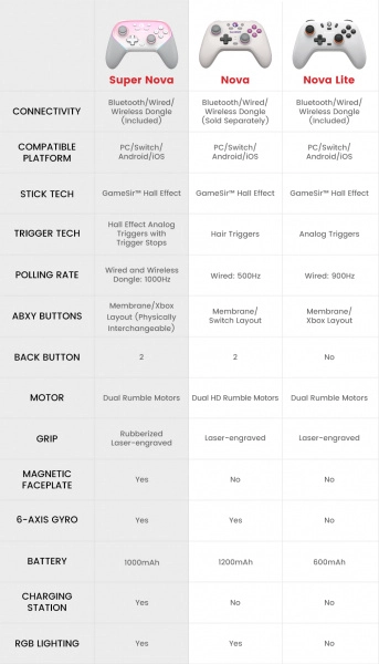 Az okos töltőállomás automatikus start-stop funkcióval és a 1000 mAh-s akkumulátor megkönnyíti a mindennapi használatot – felemeli és játszik, játék után csak lehelyezi és tölt. A GameSir és GameSir Connect alkalmazások lehetővé teszik a firmware-frissítést, a holtterek beállítását, a rezgés intenzitását és a gombok tesztelését. Felkészítve a Nintendo Switch 2-re is.