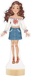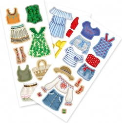 - Mágneses baba, 30 mágneses elem (ruhák, cipők, kiegészítők), fa talp