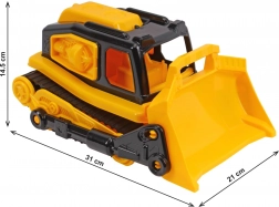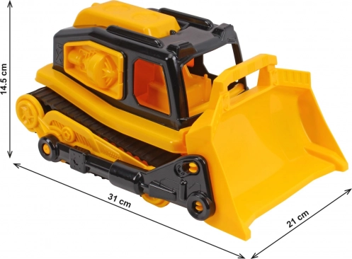 Ez a lánctalpas buldózer ideális minden kis építkezésrajongónak. A tartós műanyag szerkezetnek és a működő első rakodónak köszönhetően a gyerekek könnyedén fel tudják venni és áthelyezni a homokot vagy a kisebb tárgyakat. A játék fejleszti a finommotorikát, a kreativitást és a fantáziát.