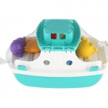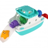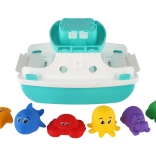 Ez a fürdőcsónak a szórakozást és a készségfejlesztést egyesíti. Vizen úszik, kihajtható rámpával rendelkezik a figurák fel- és lerakodásához, és elegendő helyet kínál a fedélzeti játékhoz. Tartozékai a puha, színes tengeri és állatos figurák, amelyeket a gyerekek szállíthatnak, rakosgathatnak és lecsúsztathatnak a rámpán.