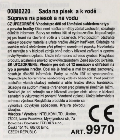 Könnyű és erős műanyaga miatt a szett könnyen hordozható, kopás- és napsugárzás-álló. Minden egy praktikus hálóban kap helyet, így a játékok fürdés vagy játék után gyorsan megszáradnak, és mindig kéznél vannak.