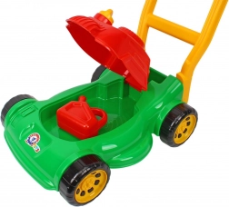 Könnyű és biztonságos gyermek fűnyíró praktikus homokozó- és kerti kiegészítőkkel, amely elragadtatja a kis segítőket. A strapabíró műanyag kialakításnak, a élénk színeknek és a könnyű tolhatóságnak köszönhetően fejleszti a fantáziát, a mozgást és a szerepjátékot kint és bent egyaránt.
