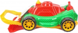 A szett tartalmaz lapátot, gereblyét és gyakran egy kis locsolókannát is – ideális homokozóhoz és kertbe.