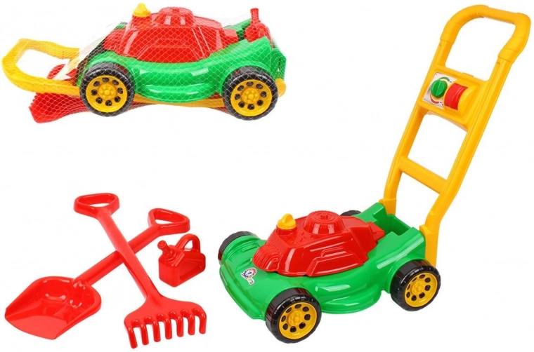 - Gyermek műanyag fűnyíró kiegészítőkkel